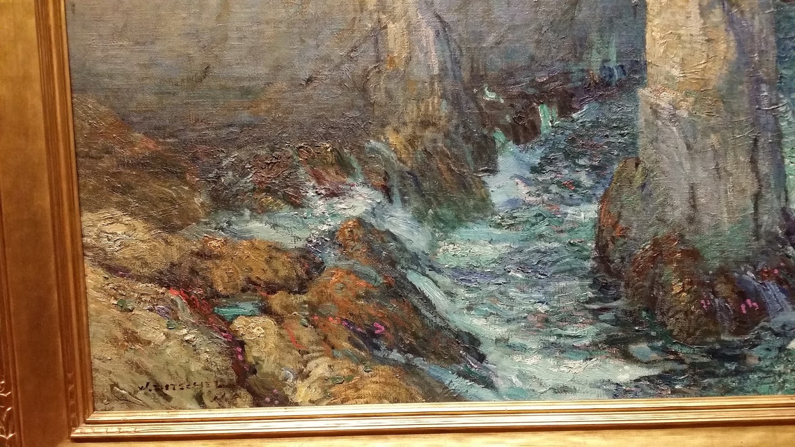 I love how from a distance the cliff and water look realistic but when you get up close, it's a lot of blobs of color, if you will. I love the colors in this piece and how rich they are but also very soft. As soon as I walked into this room I was instantly drawn to it and knew this was my favorite painting there. (click on the picture for a close up view)
